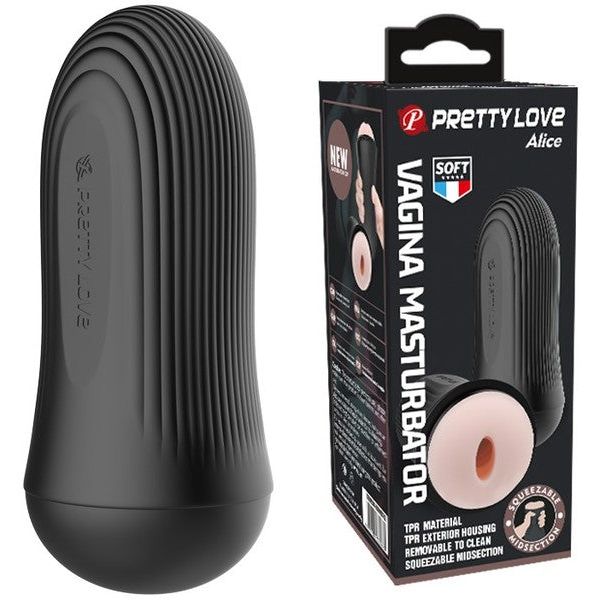 The Pretty Love Alice Vagina Masturbator is a male masturbator designed to simulate the feeling of vaginal penetration. It features a super soft TPR (thermoplastic rubber) exterior housing that is removable for easy cleaning.