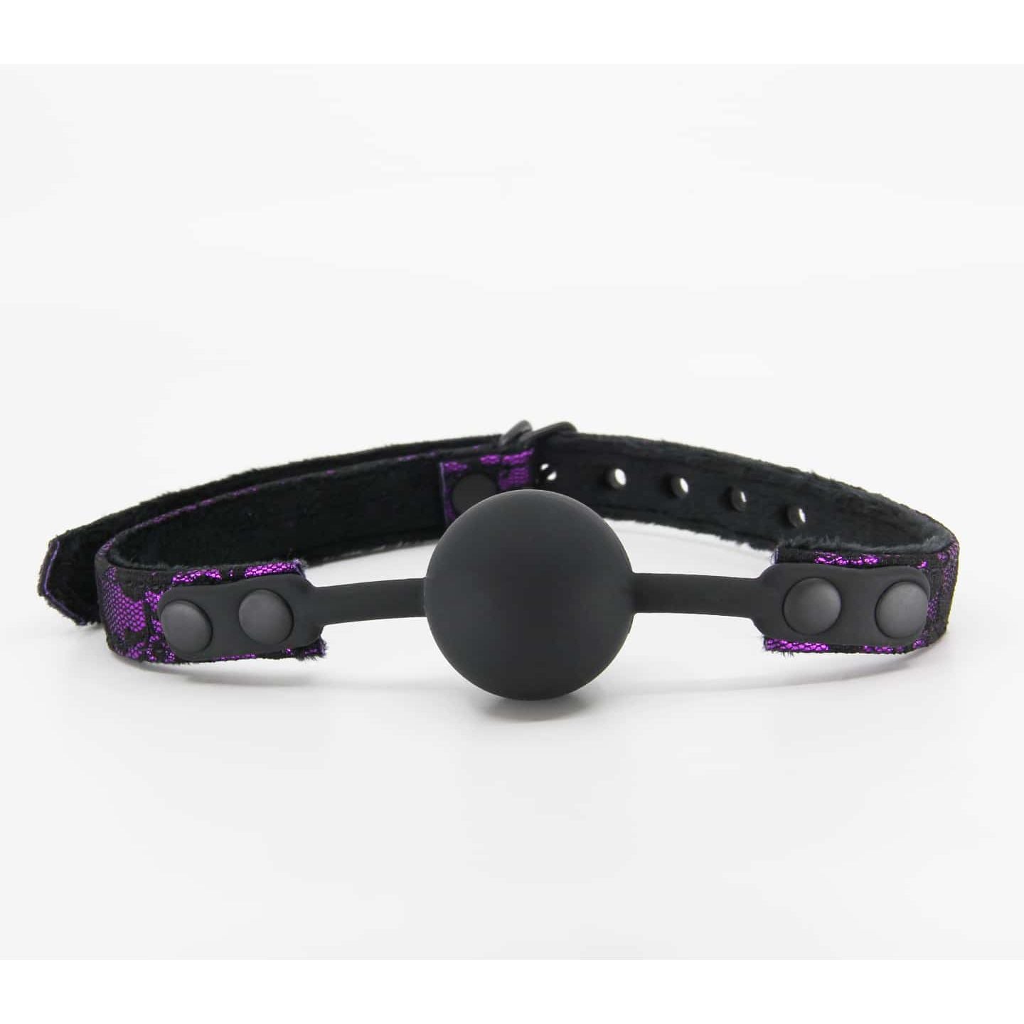 Love In Leather - Satin and Lace Silicone Ball Gag | Purple