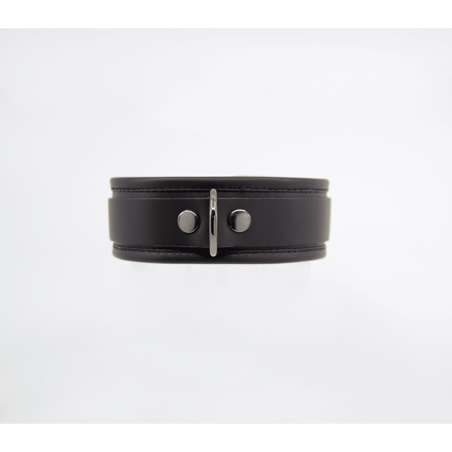 This premium padded leather collar boasts luxurious coloured hardware for a bold statement. It features a 1” centre d-ring, perfect for attaching your favourite shackle or lead. Crafted from soft, padded flat leather with a flat leather lining, it offers both comfort and durability. The collar includes a lockable buckle closure (locks not included) and measures 53.5cm end to end, adjustable between 34.5cm and 47cm, with a 4.5cm width. Choose from gold, rose gold, or pewter hardware to match your style. Complete the set with coordinating wrist cuffs, blindfold, gag, and lead for a daring look.