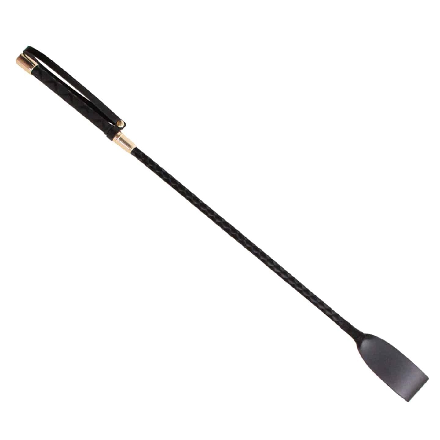 This daring Love In Leather crop features a braided satin-covered rod with sleek gold hardware for a bold statement. The leatherette tab and wrist strap ensure secure handling, while the criss-cross latex pattern on the ABS plastic handle adds grip and edge. Measuring 60cm overall, it delivers confident control and style for those who dare to play.