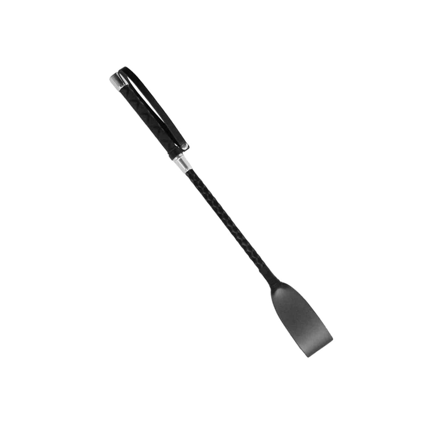 This elegant mini crop features a braided satin-covered rod with a refined criss-cross latex pattern on the ABS plastic handle for a comfortable grip. Equipped with a leather tab and wrist strap, it measures 30cm from end to end, complemented by sleek silver-coloured metal hardware. Crafted as part of the Love in Leather collection, this accessory combines sophistication with functional design.