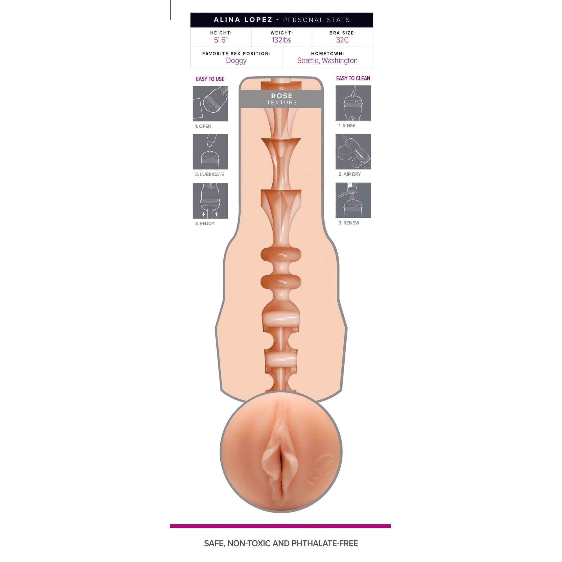 Alina’s “Rose” is the fuckable flower you never knew you needed. This texture begins with a tight entry point that leads you into a series of narrow chambers made up of pleasure rings, gripping nubs, and ultra-tight passageways expertly designed to gently massage your cock with each and every thrust.