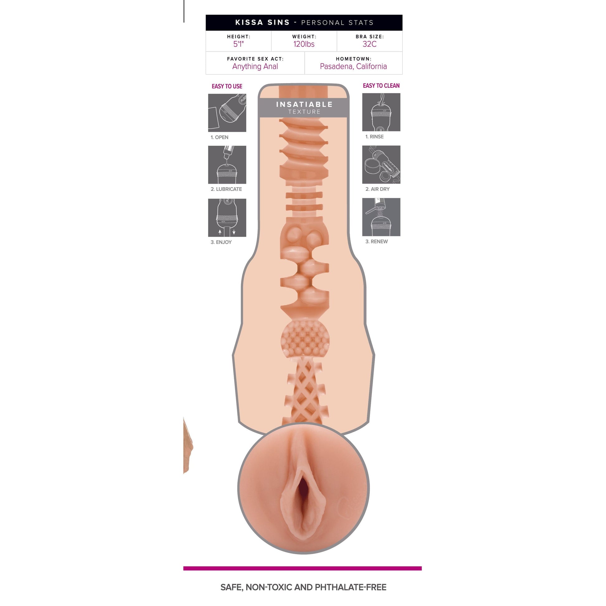Kissa Sins is exactly that...Insatiable. Never able to get enough cock or lesbian sex, Kissa is always ready and wiling to please. The Insatiable Fleshlight is perfect for someone looking for a tight and intricate chamber to stuff his shaft.