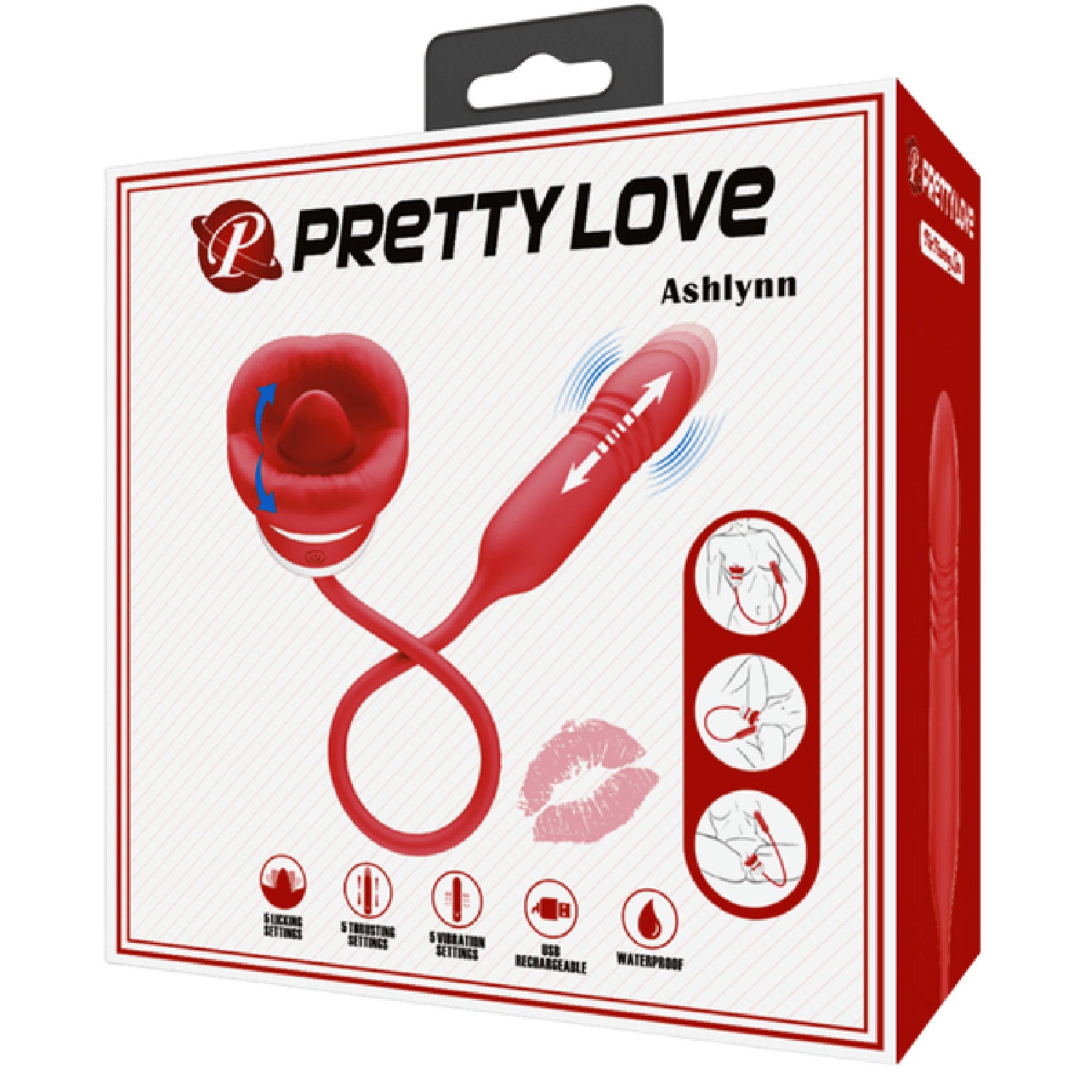 The Pretty Love Ashlynn is a uniquely designed mouth-shaped vibrator that combines a thrusting bullet with a licking tongue for an unprecedented blend of sensations. When positioned against your sweet spot, the soft tongue provides lifelike licking pleasure while the powerful thrusting bullet delivers deep internal stimulation. The supple surrounding lips tease and tingle in a wider range, from soft flirty licks to wild, intense stimulation, giving you a whole new level of ticklish, wet, and ambiguous pleasure.