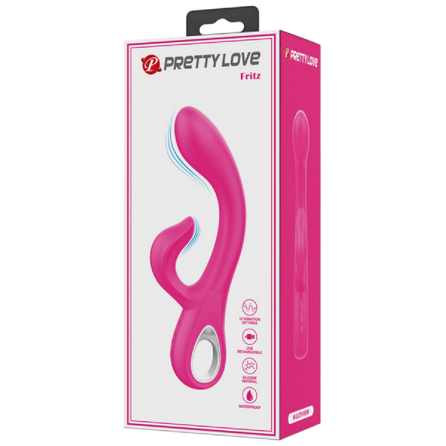 The Pretty Love Rechargeable Fritz is a uniquely textured rabbit vibrator designed for simultaneous G-spot and clitoral stimulation, delivering mind-blowing internal and external sensations. Crafted from smooth silicone, its ergonomic shape and flexible clitoral teaser ensure it hits your sweet spots with precision. Featuring a big-headed G-spot tip and a very strong clitoral stimulator, Fritz offers double the pleasure, making every session intensely satisfying. Waterproof for easy cleaning and equipped with 12 intense vibration functions, this vibrator guarantees climax after climax.