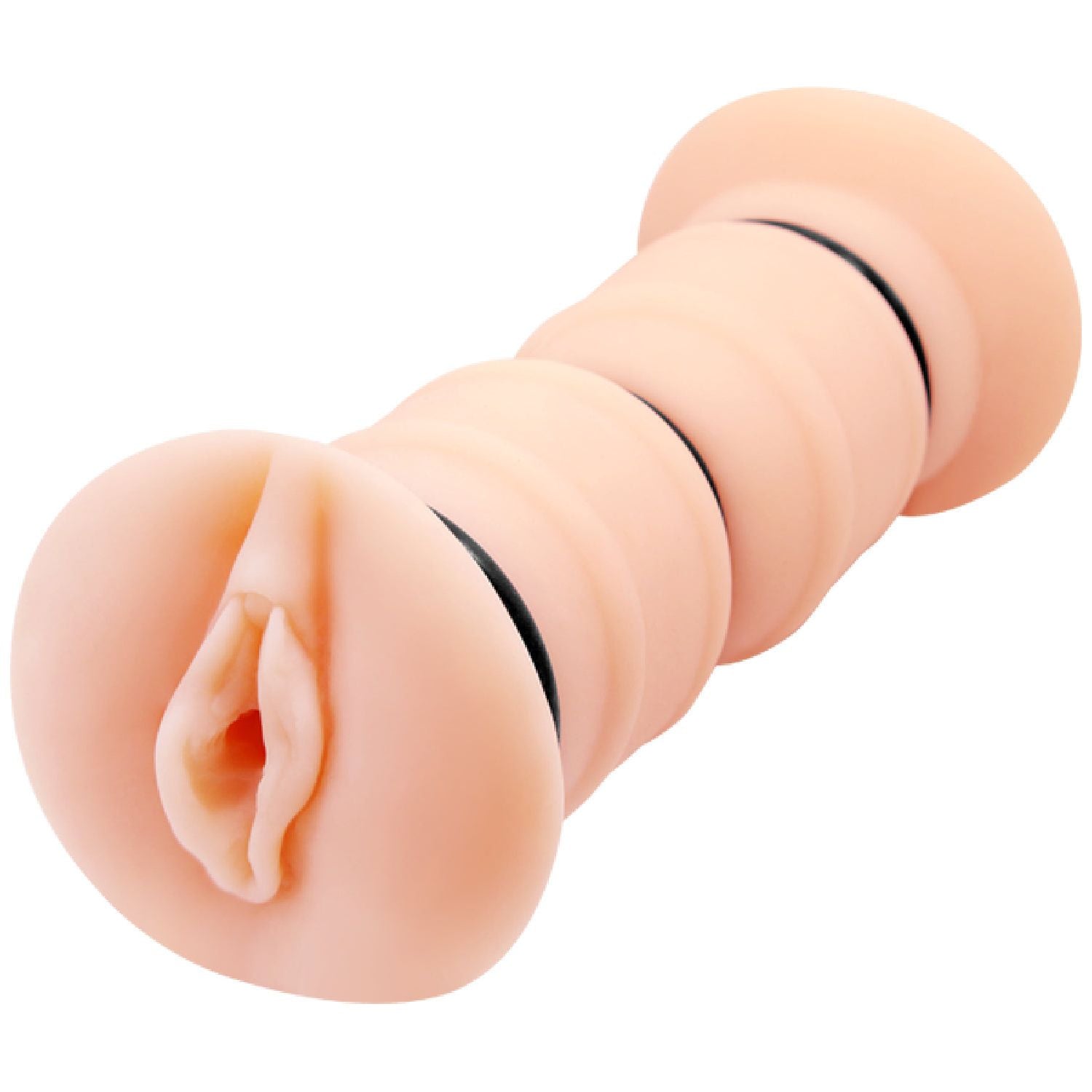 The Crazy Bull Emma Vibrating Double Vagina is a masturbator designed for men seeking a realistic and intense stimulation experience. This toy features an oversized vagina stroker with a nubbed and ribbed inner sleeve, providing a textured and stimulating feel. The sleeve also includes three rings that can be tightened for a more intense and tighter grip, adding to the overall sensation.